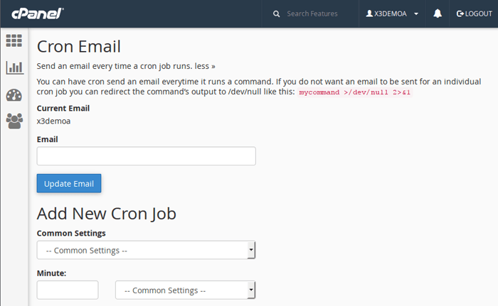 Before adding a job, you may be asked to specify an email address in the Cron Email section. This address will receive cron output and error messages, which can be very useful for troubleshooting cron execution issues.