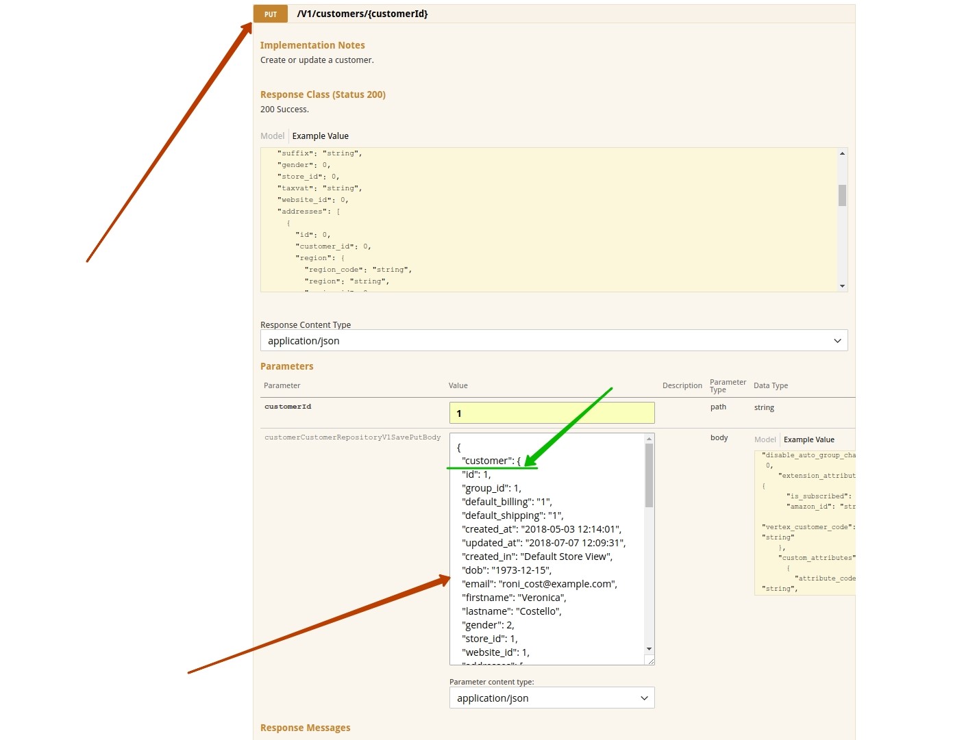 Go to /V1/customers/{customerId}, paste the customer data, and confirm details.