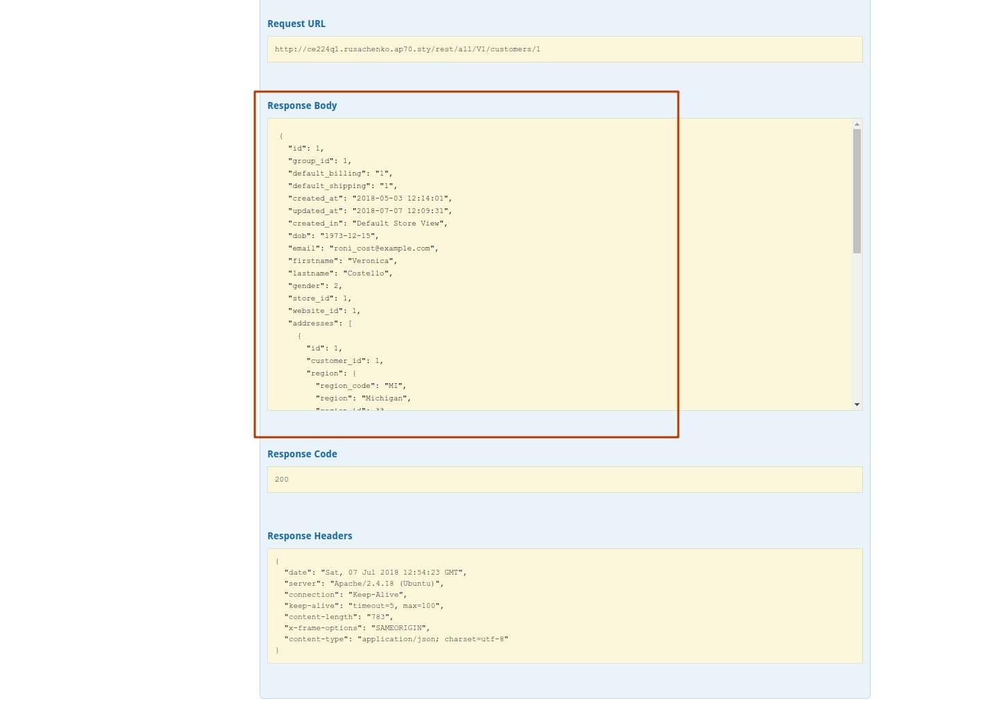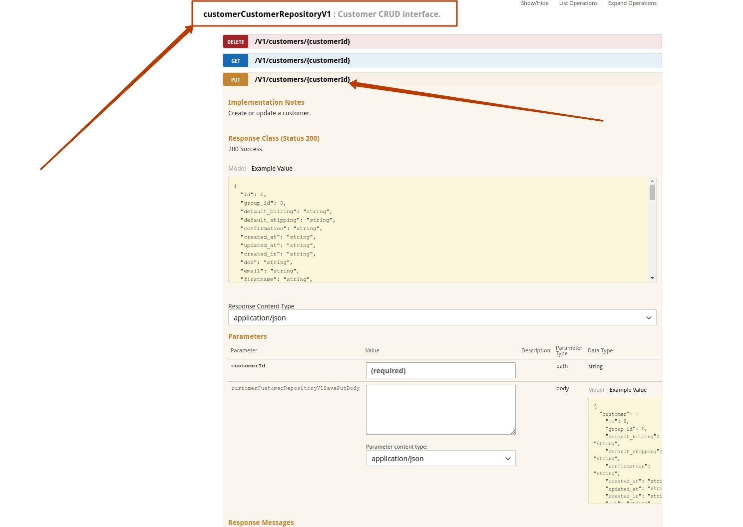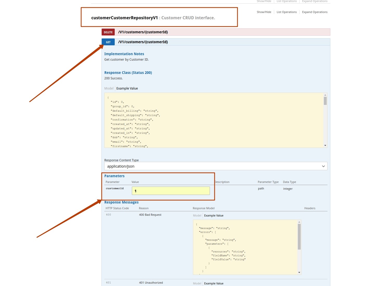 As you have already received the admin permissions, you are able to edit customer attributes. To do this, locate customerCustomerRepositoryV1, then select the customer ID and click “Try it out” to access customer data.