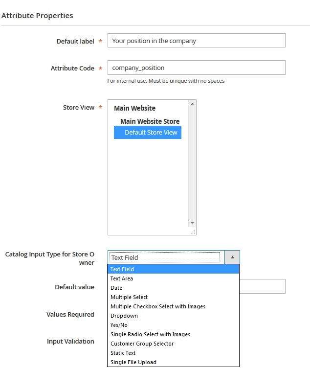 - Forms: Specify where the attribute should appear, such as in the admin area, registration, or customer account forms.