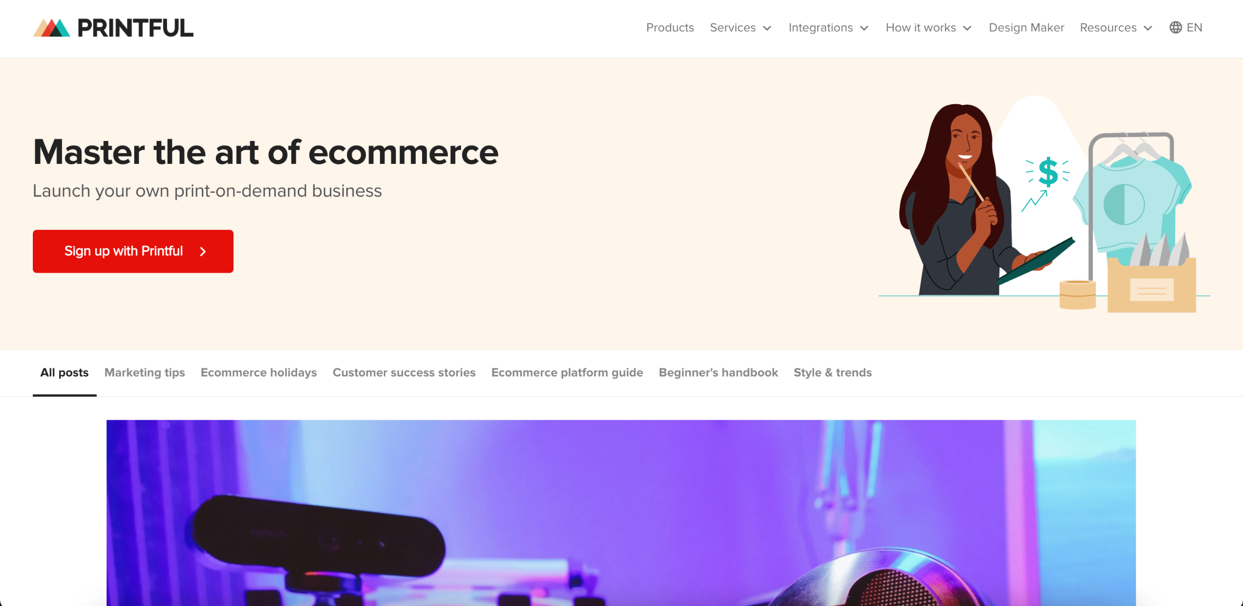 This is one of those cases where the name is deceptive - looking at it, you can't tell there's anything here about e-commerce. But in fact, the Printful blog contains marketing tips, guides to e-commerce platforms, and customer success stories, so you can easily find useful content to help you run or build the business.