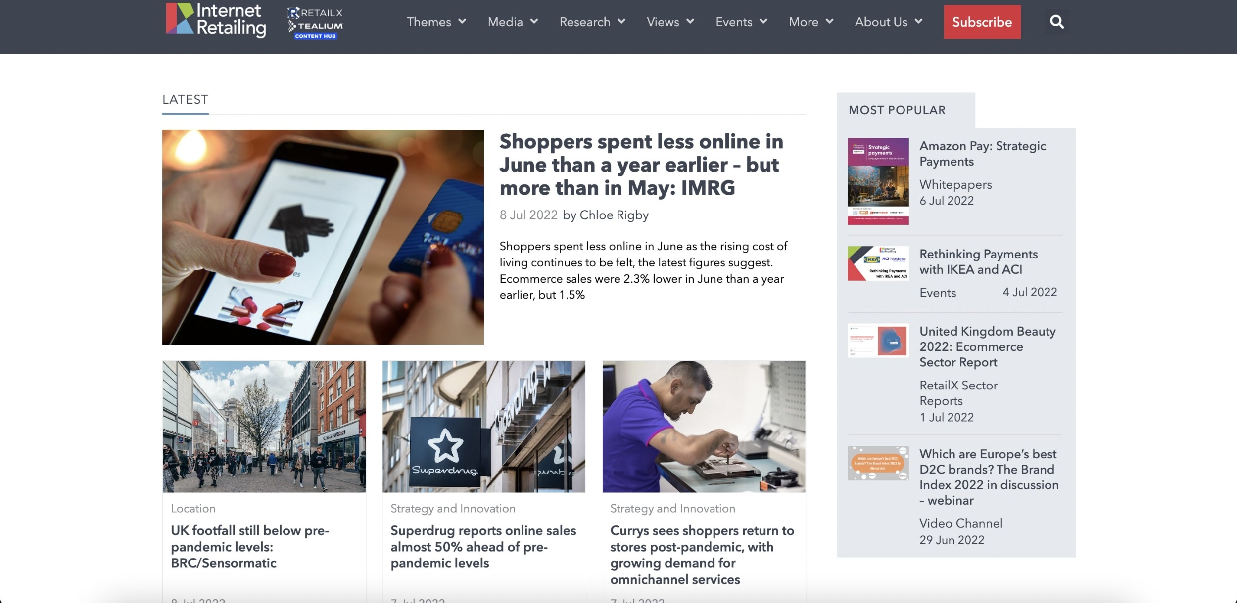 "InternetRetailing is the leading title for professionals in multichannel retail and e-commerce across the UK & Europe, providing insight, analysis, in-depth research and events, focused on driving performance in our dynamic sector."