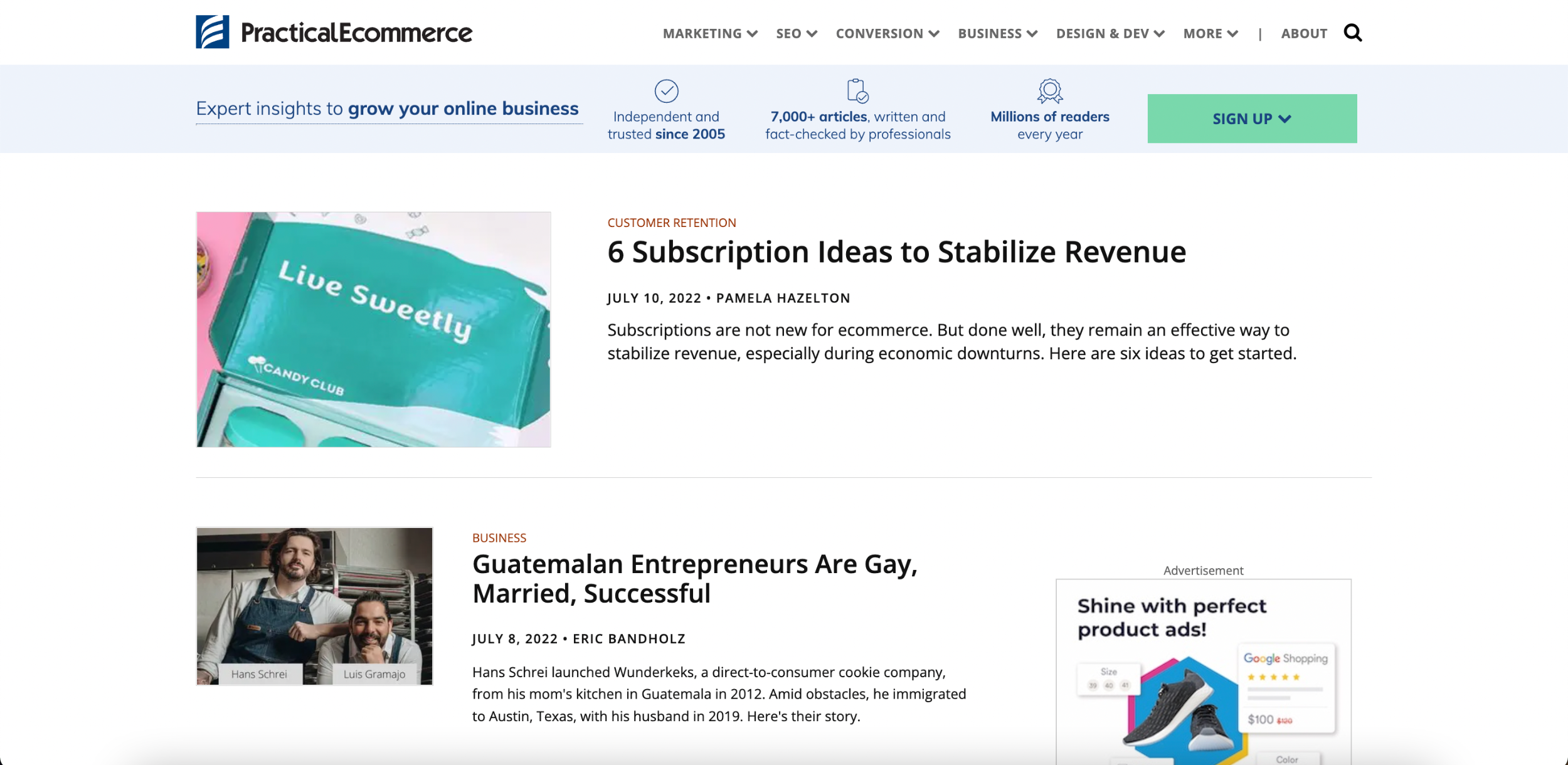 "The mission of Practical Ecommerce is to help merchants improve their online businesses."