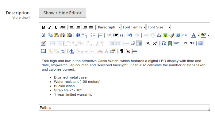 And this is what a product attribute set is good to use in Magento 2. You input the Type field to create for watches to the Watches’ attribute set (i.e., not default). This way, a field with this Type (for instance, a drop-down with the watch types) will appear only in the settings of the watch products, and later, as a part of the information on their product pages.