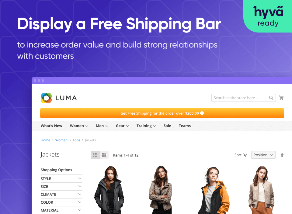 Magento 2 Free shipping bar helps boost order value and sales by delivering a tempting offer.