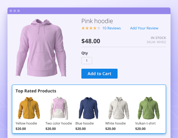 Flexible options allow you to create any number of blocks and insert them via widgets or CMS to any page. Due to the automation options based on sorting, you can display various featured products: